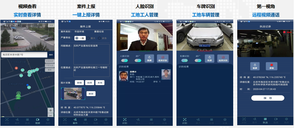 人臉/車(chē)牌識(shí)別、信息近眼顯示、第一視角視頻、視頻語(yǔ)音對(duì)講、事件上報(bào)/軌跡記錄 工地防疫防控