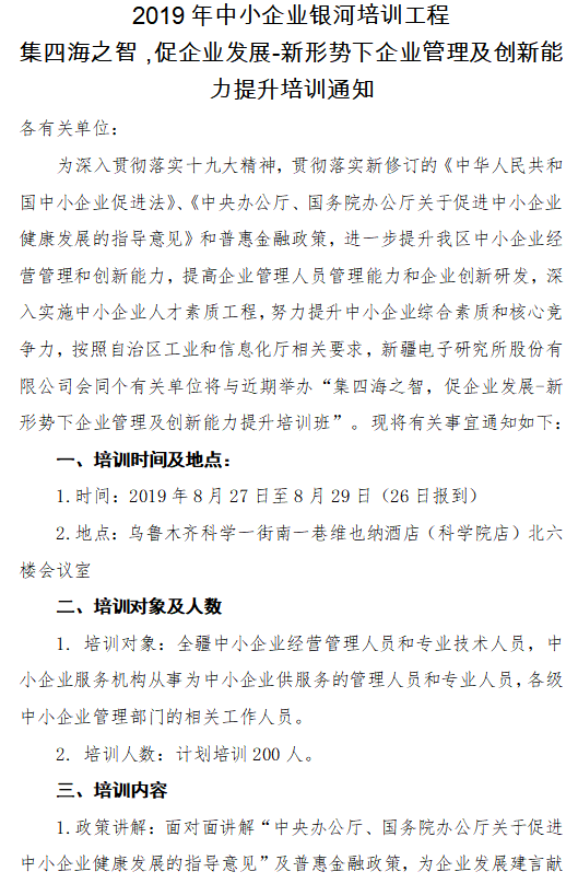 2019年中小企業(yè)銀河培訓(xùn)工程
