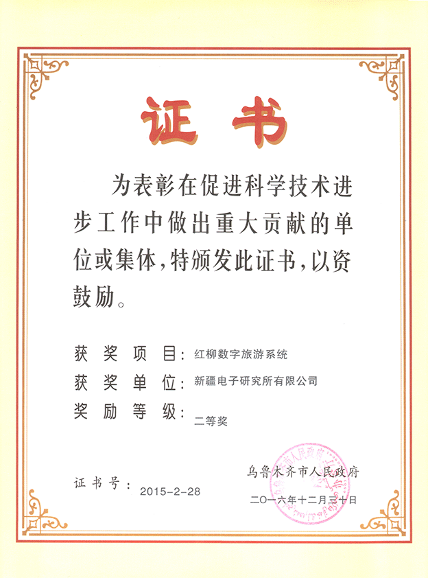 市科技進步二等獎(紅柳數(shù)字旅游系統(tǒng))