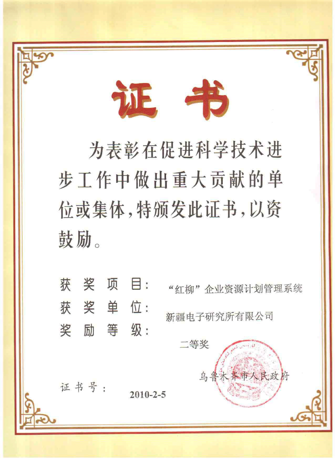 紅柳企業(yè)資源計劃管理系統(tǒng)二等獎