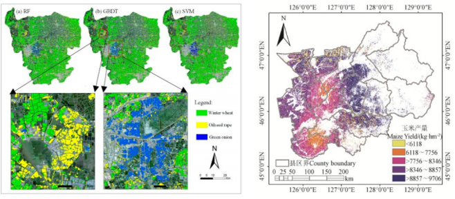 利用多源高分辨率衛(wèi)星遙感影像,針對包括水稻、玉米、冬小麥、油菜、茶葉、葡萄等農(nóng)作物類型的大尺度、高分辨率作物面積、長勢、產(chǎn)量等農(nóng)情信息監(jiān)測需求,基于機理模型及統(tǒng)計模型,開發(fā)了包括遙感影像數(shù)據(jù)預(yù)處理、作